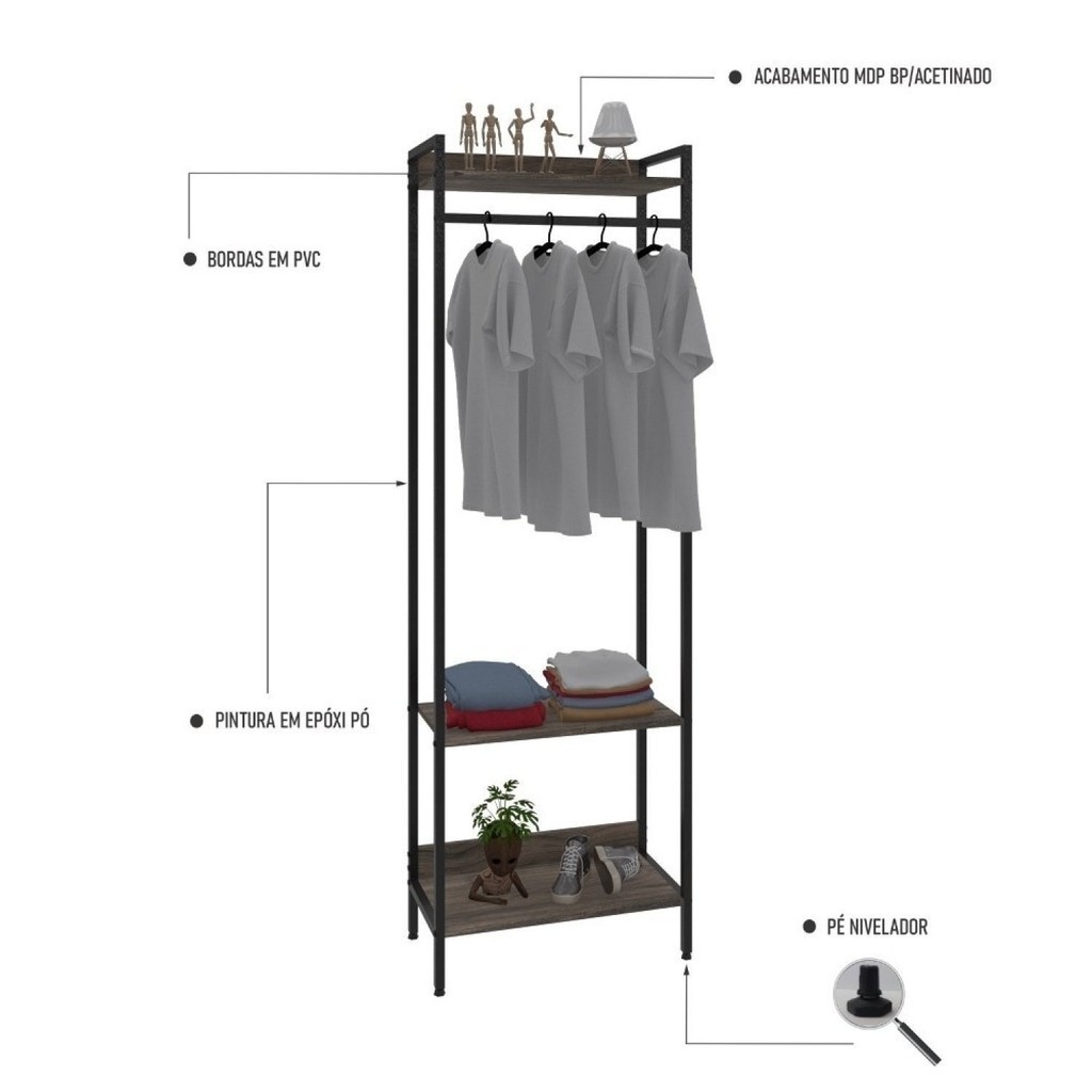 Estante Closet Arara 187x60cm 3 Prateleiras Active Yescasa