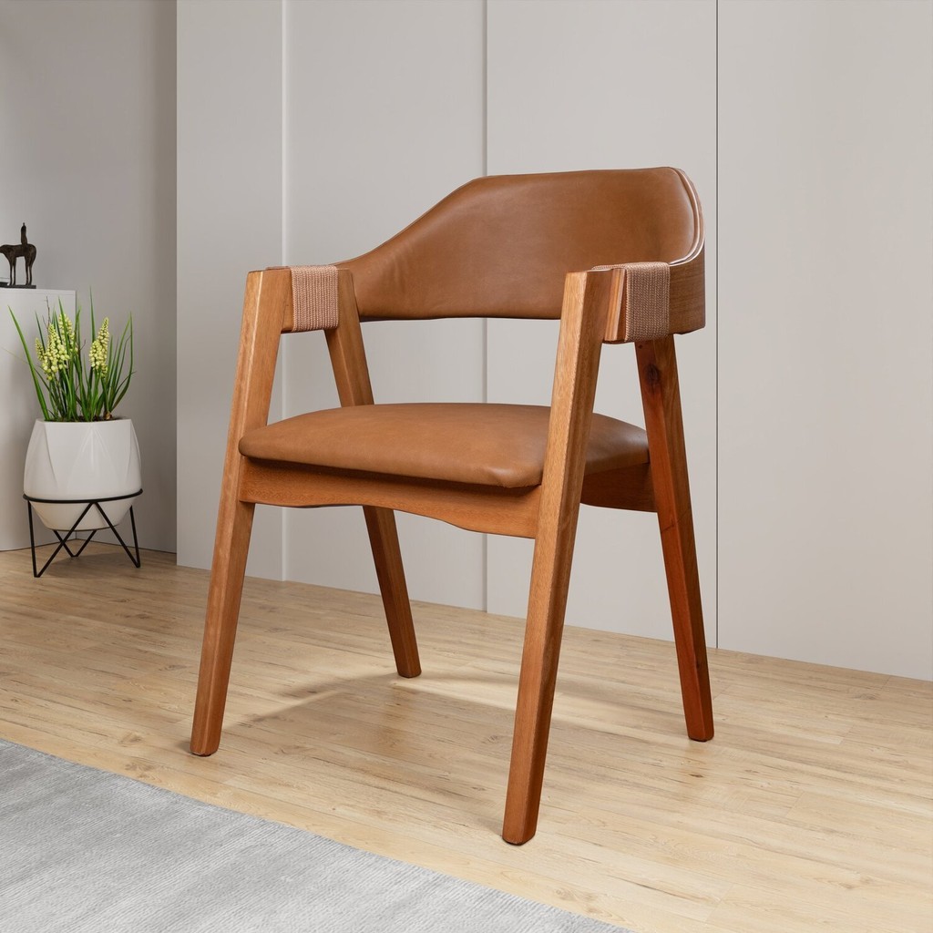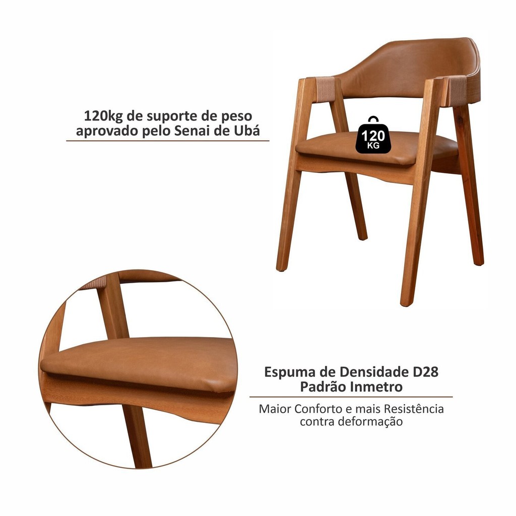 Kit 6 Cadeiras de Madeira Maciça Tauari, Estofada e Braço com Corda Náutica Bélgica Espresso Móveis 6
