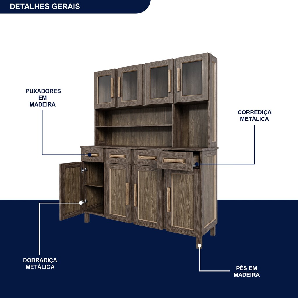 Armário para Cozinha 8 Portas São Luis Imbuia Natural