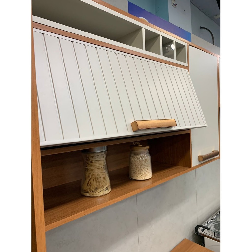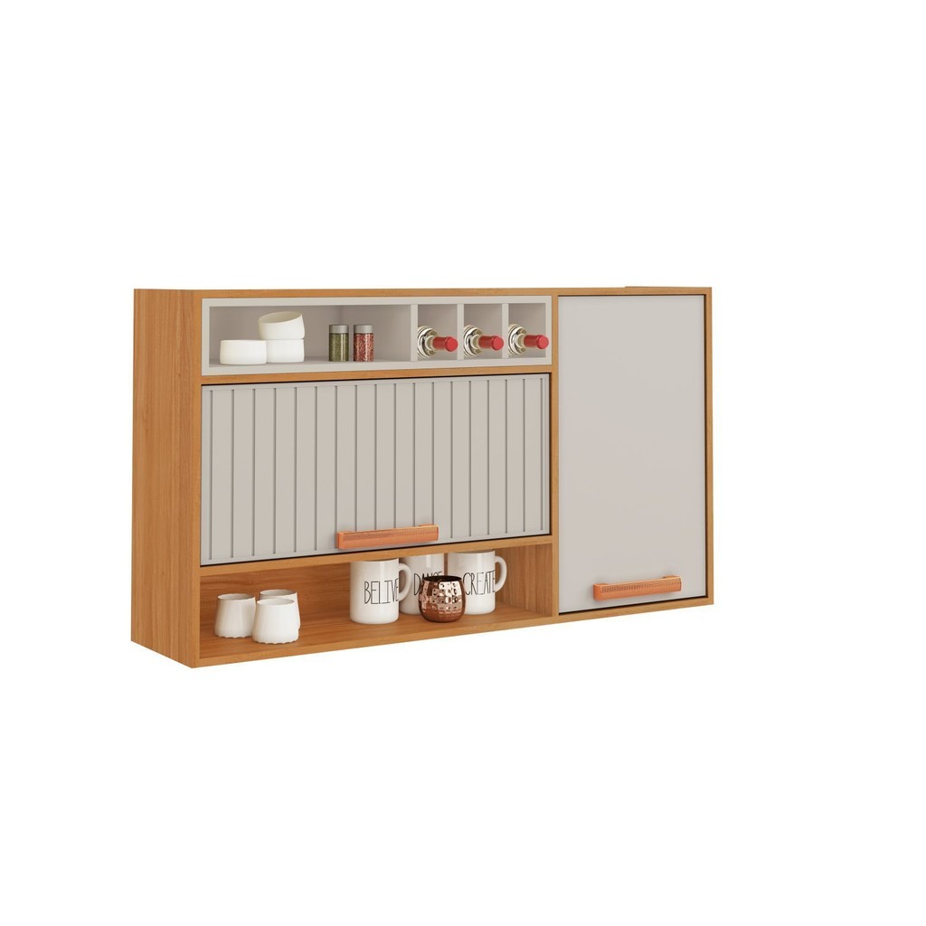Armário de Cozinha 2 Portas 120cm Porta Horizontal Ripada em Aço Nicho Garrafeiro Nápoles Itatiaia Off-White/Cinamomo