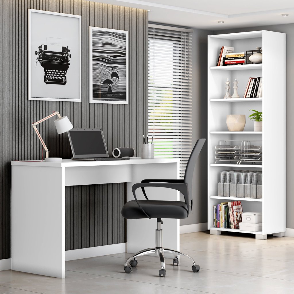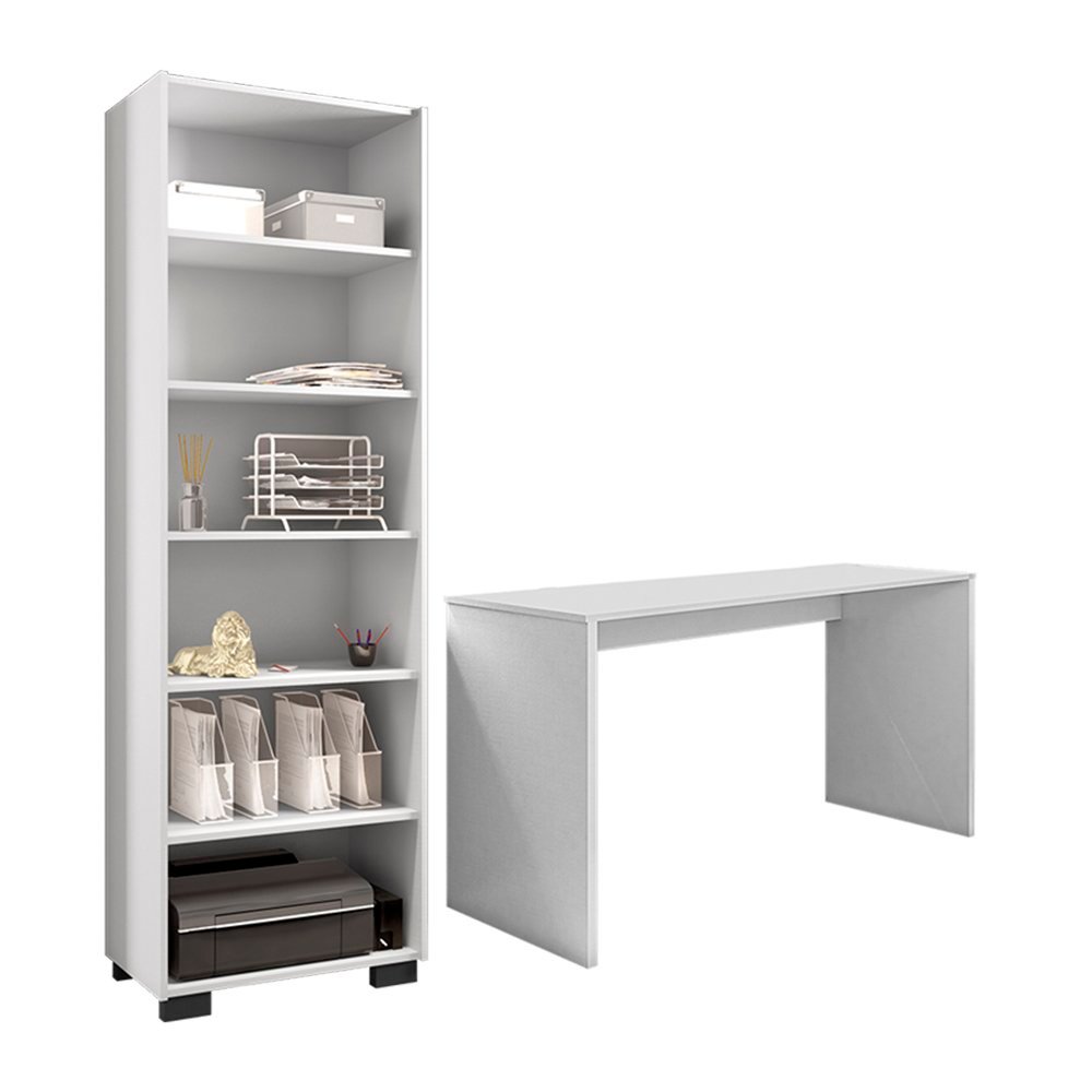Kit 2 Peças com Estante Livreiro e Escrivaninha Gávea Espresso Móveis Branco