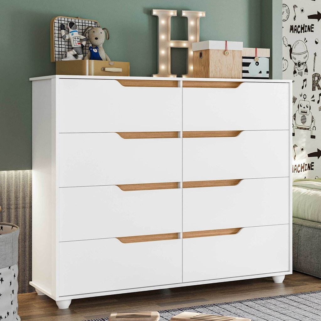 Cômoda Infantil 8 Gavetas Circus Branco/Freijó