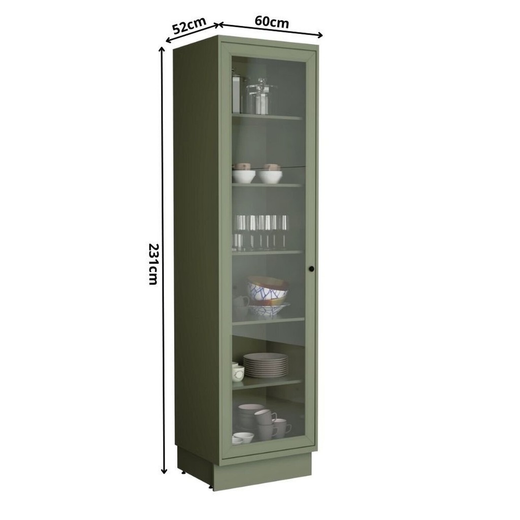 Paneleiro 1 Porta com Vidro 60cm Cozinha Sevilha Verde