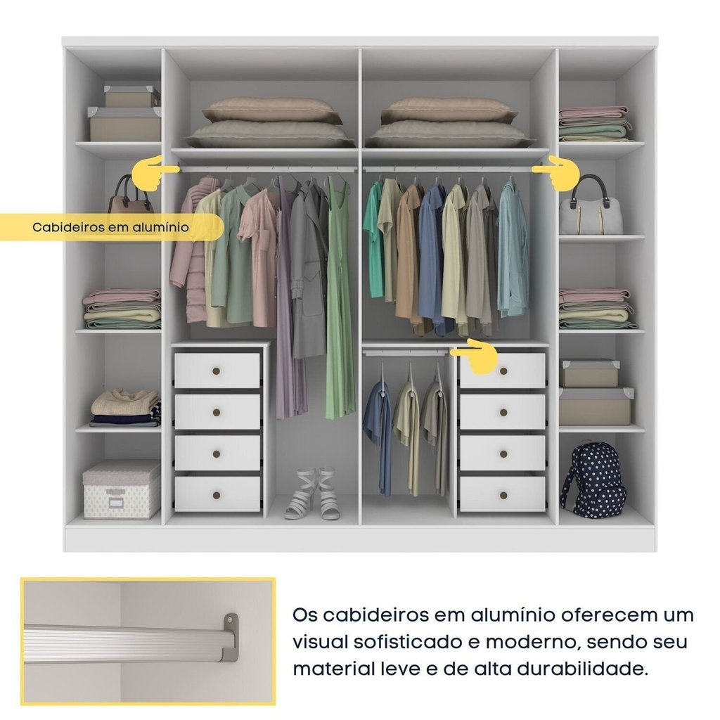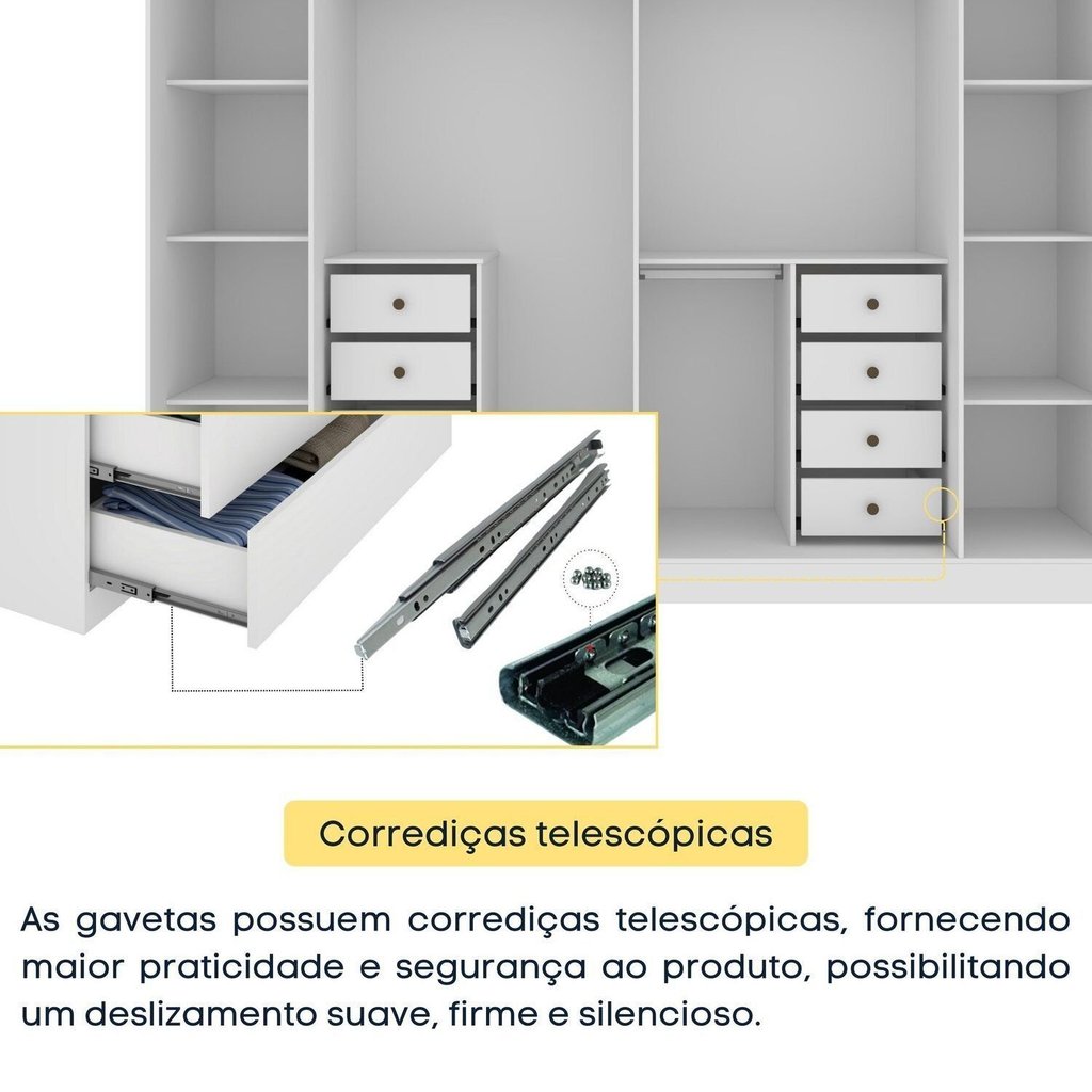 Guarda Roupa Casal 6 Portas 8 Gavetas Puxador MDF 270cm Portugal Espresso Móveis Neve