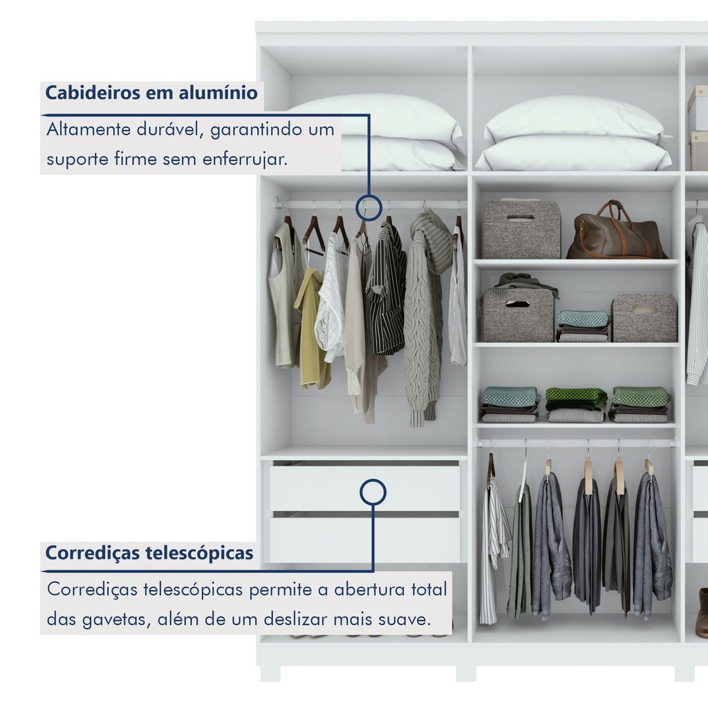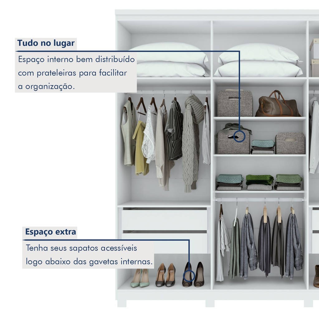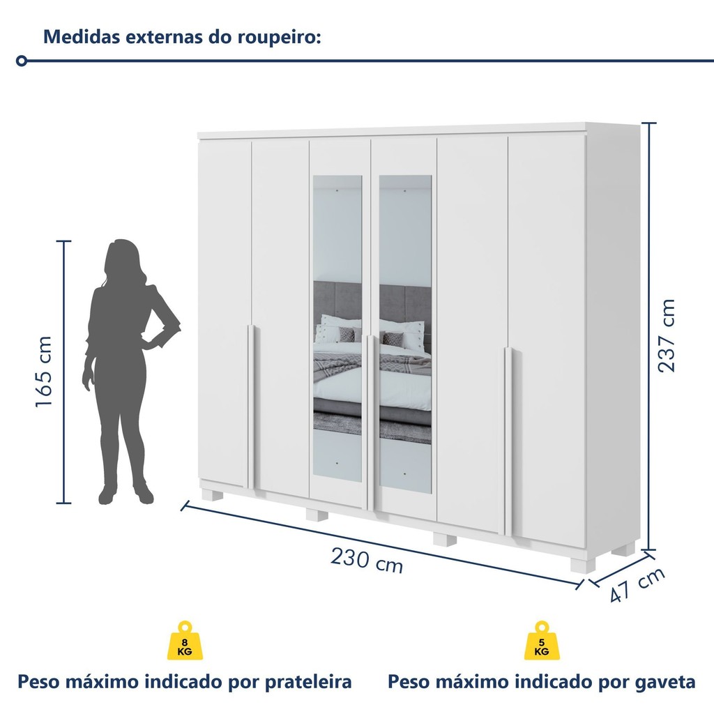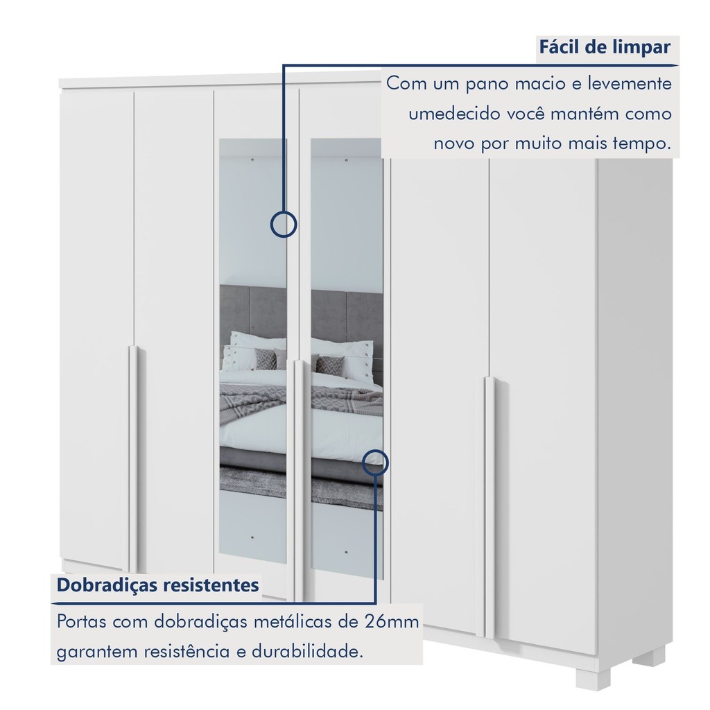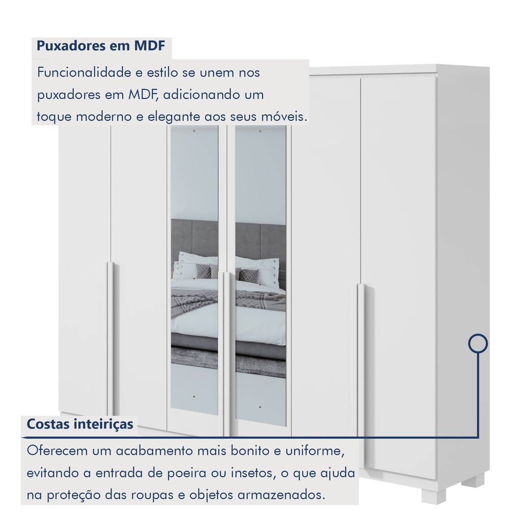 Guarda-roupa 6 Portas 4 Gavetas 100% Mdf Alonzo com Espelho e com Pés Branco