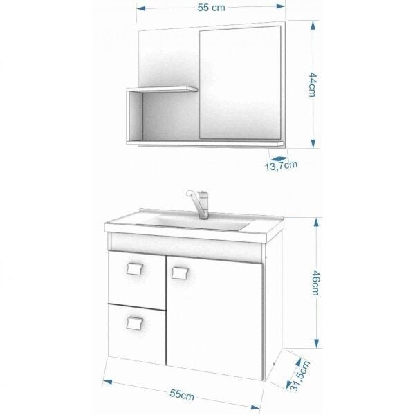 Gabinete Suspenso Com Cuba E Espelheira Isa Amêndoa/Branco