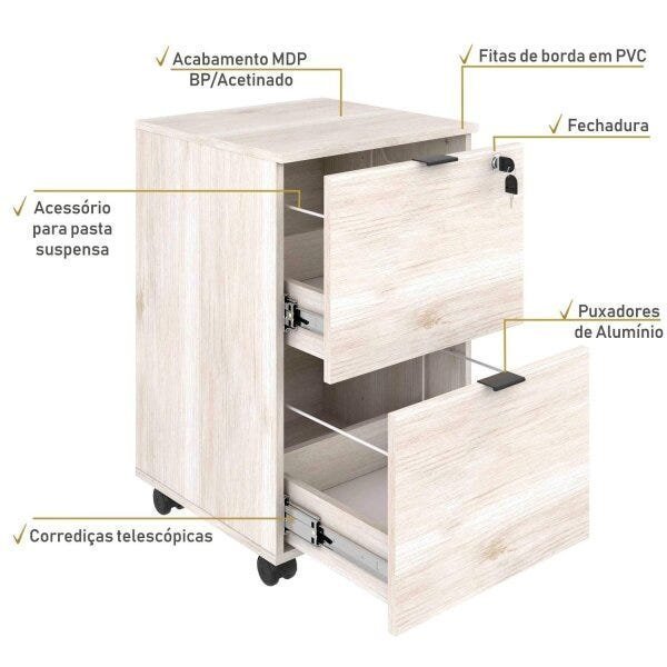 Gaveteiro Volante 2 Gavetas para Pastas Kugv42 Kuadra Espresso Móveis Snow/Preto Ônix