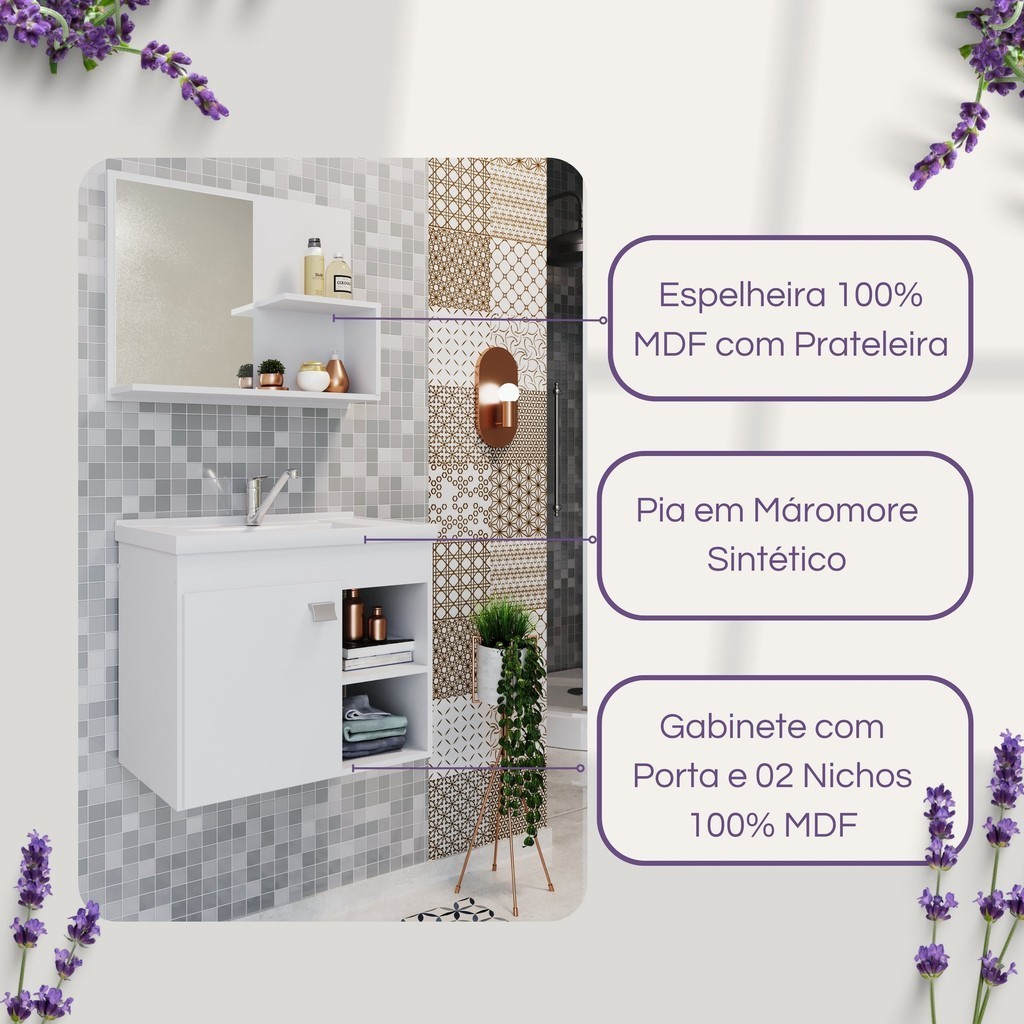 Gabinete Suspenso com Cuba e Espelheira Bia Branco