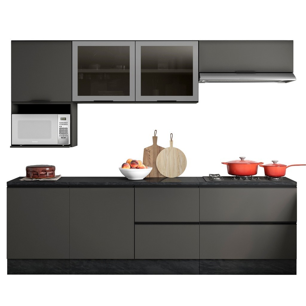 Cozinha Modulada Completa 7 Peças 7 Portas 4 Gavetas com Balcão para Cooktop Etna Grafite