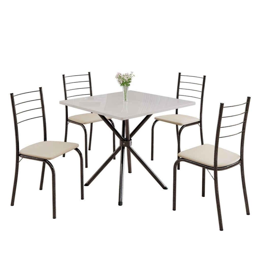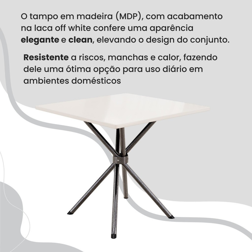Conjunto Sala de Jantar Mesa Quadrada 70x70cm Tampo Madeira Mdp 4 Cadeiras Rio Creme/Mart Prata