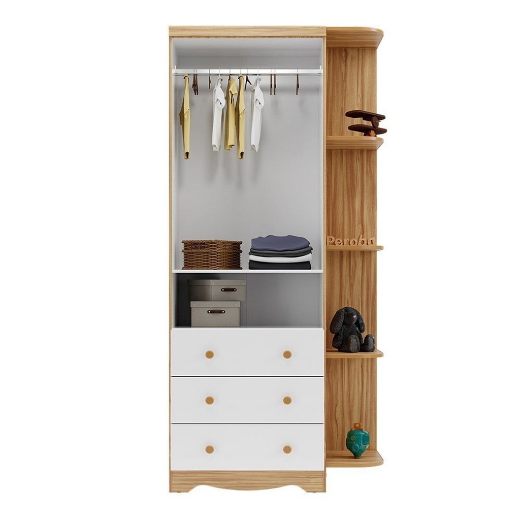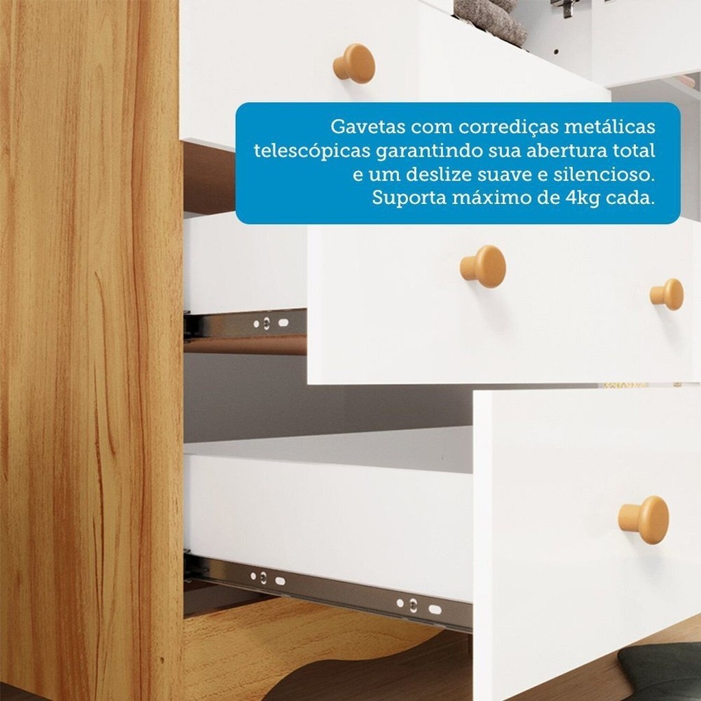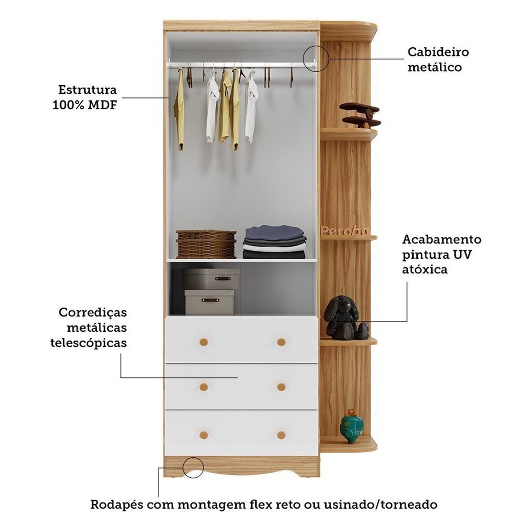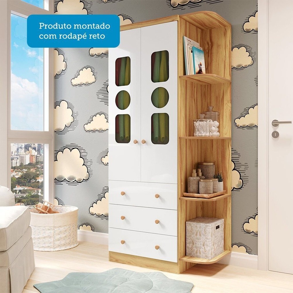 Guarda-roupa Infantil 85cm 2 Portas 3 Gavetas com Janelas e Prateleira Ezra 100% Mdf Espresso Móve Branco