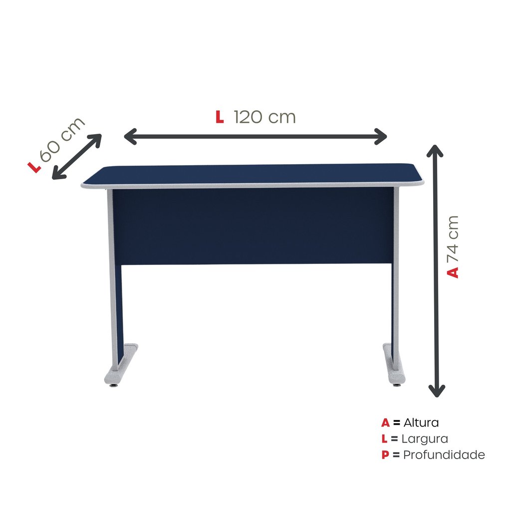 Escrivaninha Mesa Escritório Secretária Mx120 Maxxi Cinza Azul