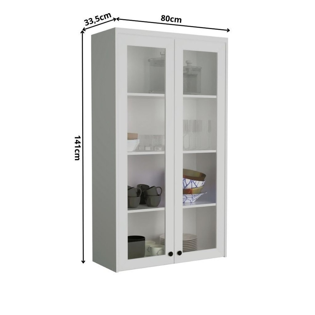 Cristaleira 80cm 2 Portas com Vidro Cozinha Sevilha Branco Ártico