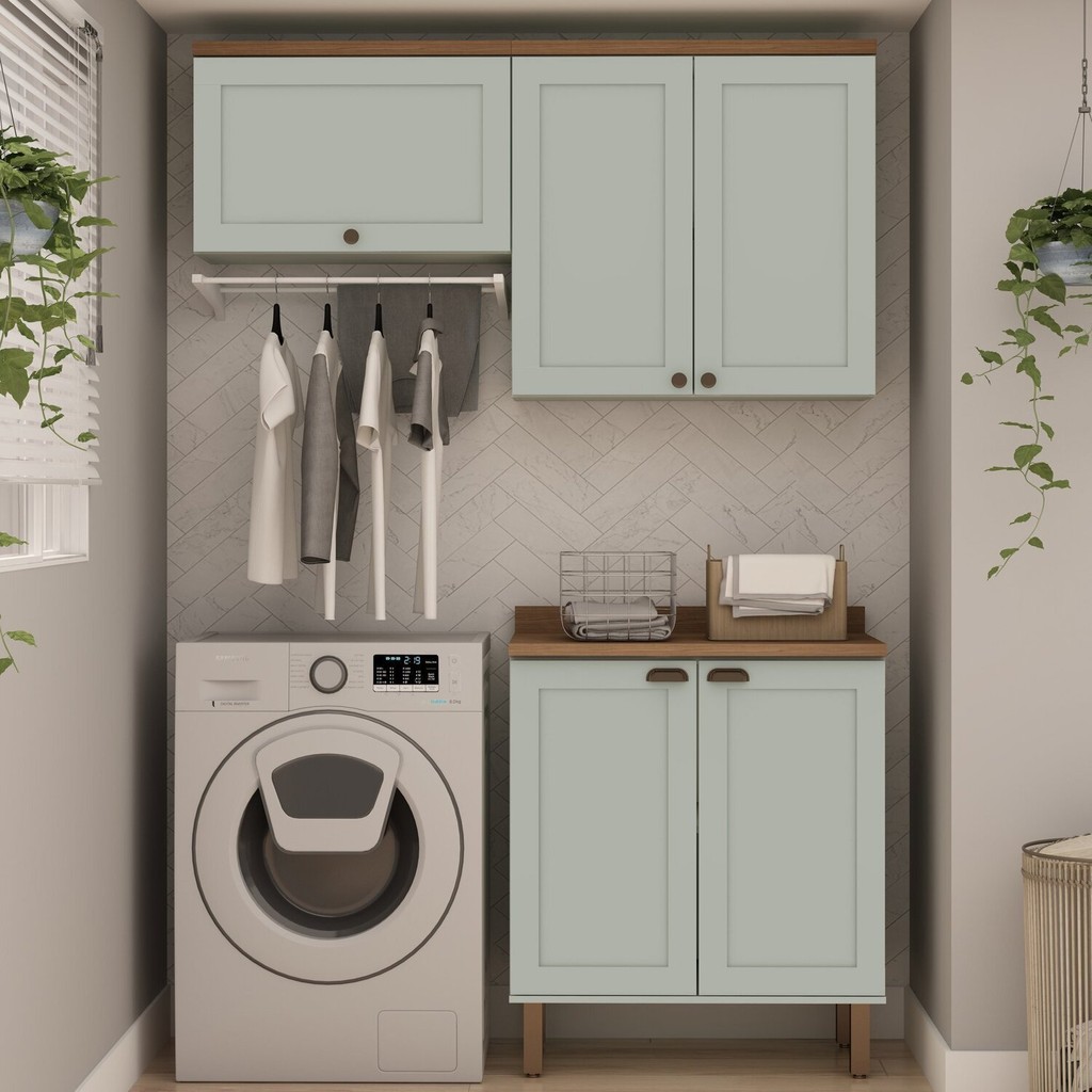 Kit Área de Serviço com 3 Módulos com Portas Provençais para Lavanderia 100% Mdf Mint