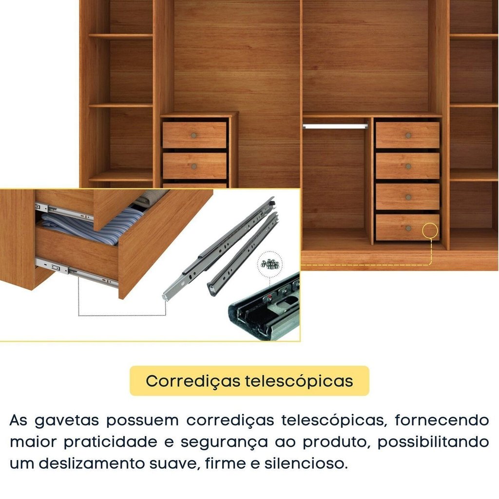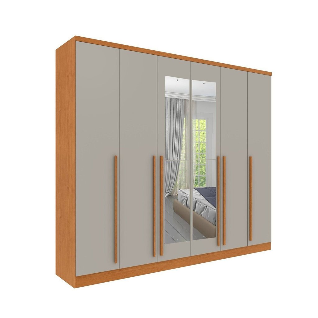 Guarda Roupa Casal 6 Portas 8 Gavetas Puxador MDF 270cm com Espelho Portugal Espresso Móveis Cinamomo/Off White