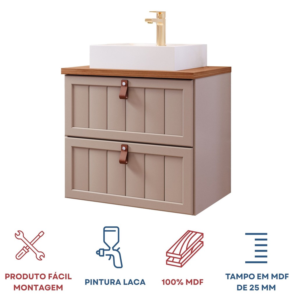 Gabinete Suspenso para Banheiro com Cuba Ketlyn Espresso Móveis
