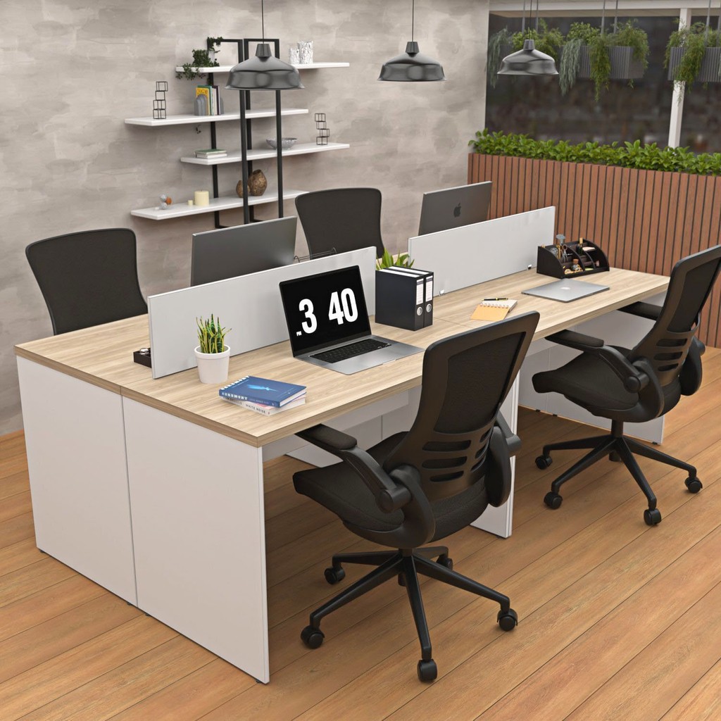 Estação de Trabalho Mesa Plataforma Escritório 1200x600 4 Lugares Carvalho/Branco