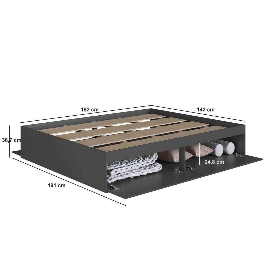 Cama Casal com 4 Portas 140 Tókio para Quarto Grafite
