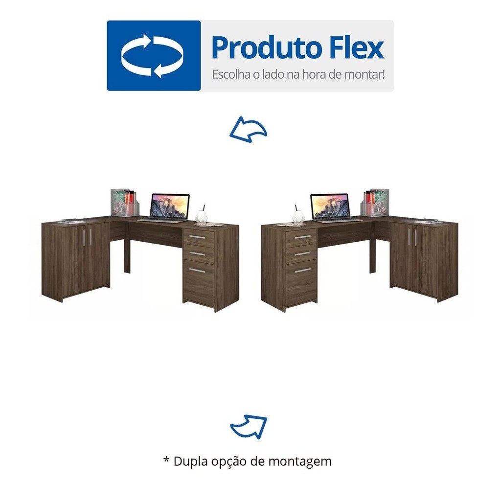 Escrivaninha Mesa Escritório em L 2 Gavetas 3 Portas Office Nt 2005 157cm Nogal Trend