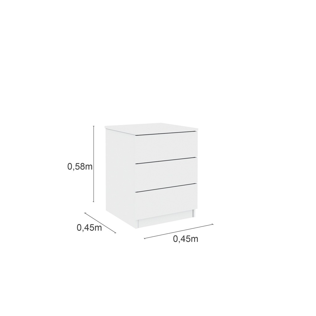 Mesa de Cabeceira 3 Gavetas 45cm Veronna Neve