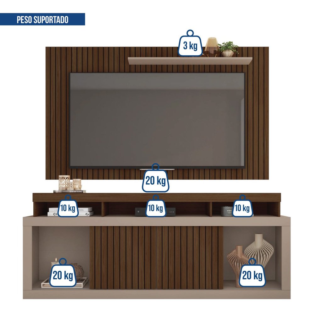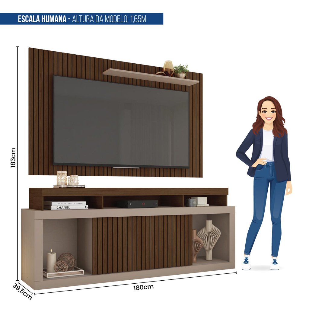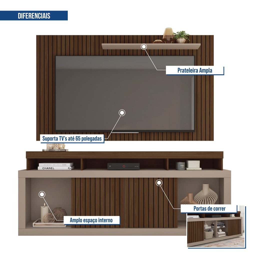 Rack com Painel para TV Até 65 Polegadas com Ripado Esmeralda Havana/Fendi