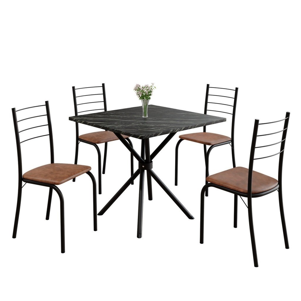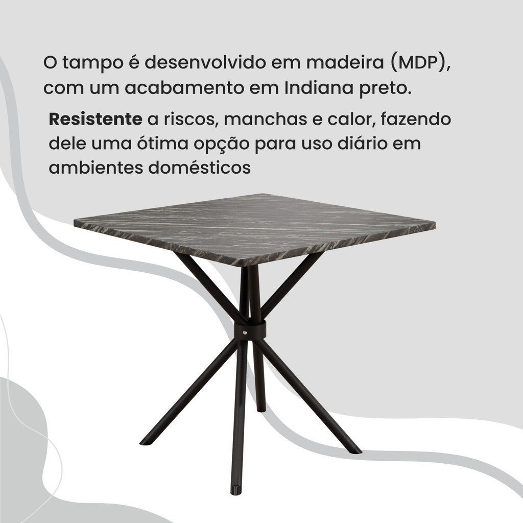 Conjunto Sala de Jantar Mesa Quadrada 70x70cm Tampo Madeira Mdp Indiana 4 Cadeiras Rio Marrom/Preto Fosco
