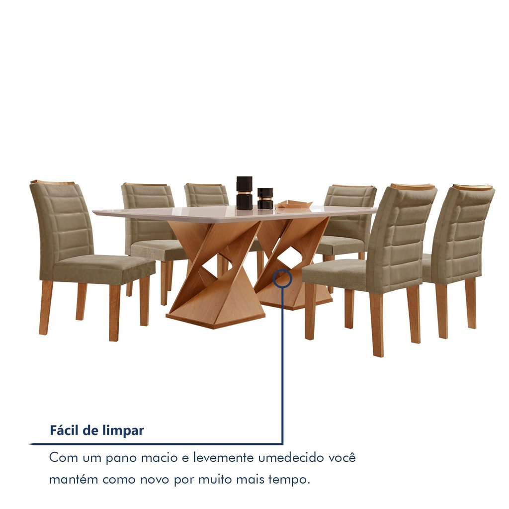 Conjunto Sala de Jantar Genova Tampo Vidro/mdf com 6 Cadeiras Genova Smart Plus Cinamomo/Off White/Areia