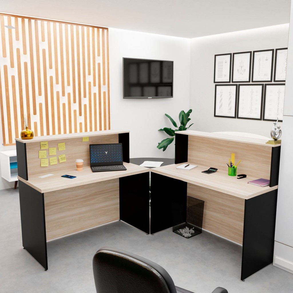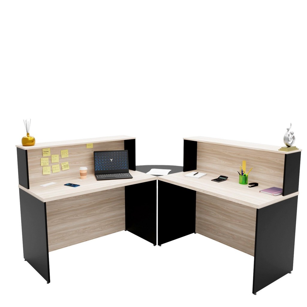Balcão Atendimento De Canto Em L Recepção Consultório 120x60cm Carvalho