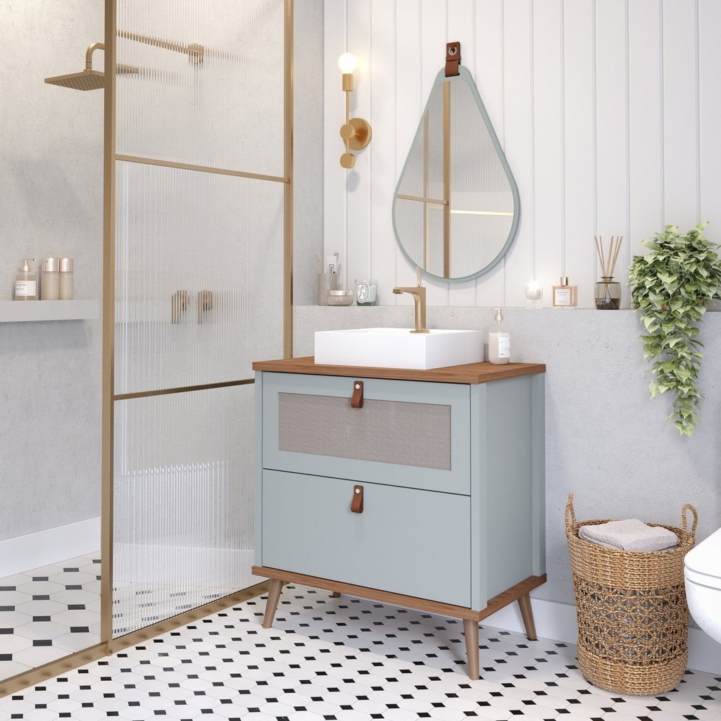 Gabinete para Banheiro com Cuba Mily Espresso Móveis Pistache