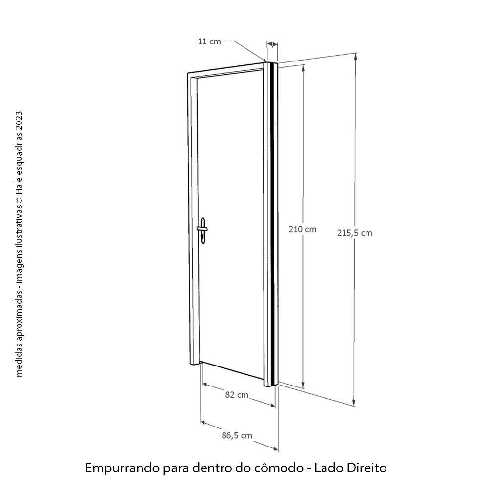 Kit Porta de Madeira 210x82cm Batente 11cm Fechadura Golf Rodam Abertura Direita