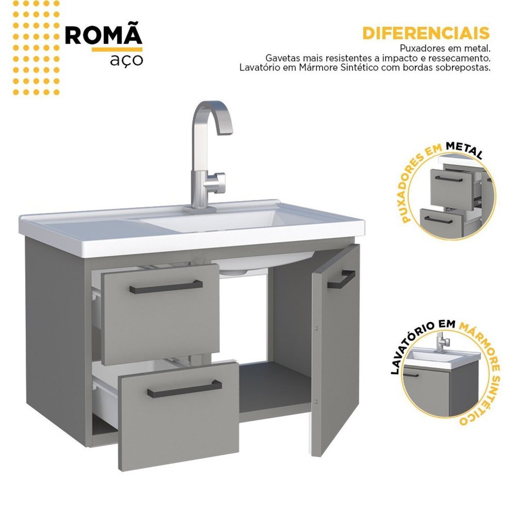 Gabinete para Banheiro em Aço 61,5cm Romã Cinza