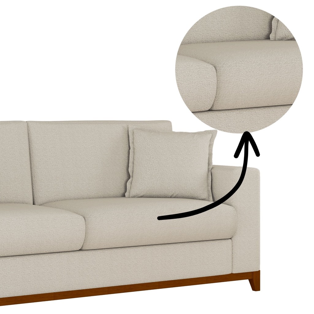Sofá Living Vintage 3 Lugares 220cm em Boucle Slim Bege