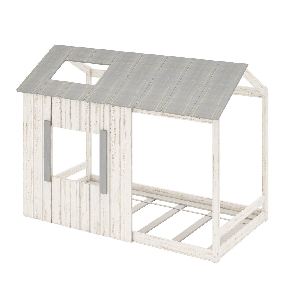 Cama Infantil Montessoriana Cabana Pkolino Off White/Cinza Claro