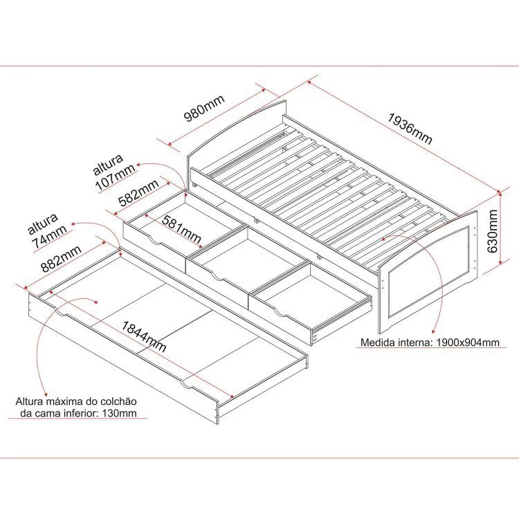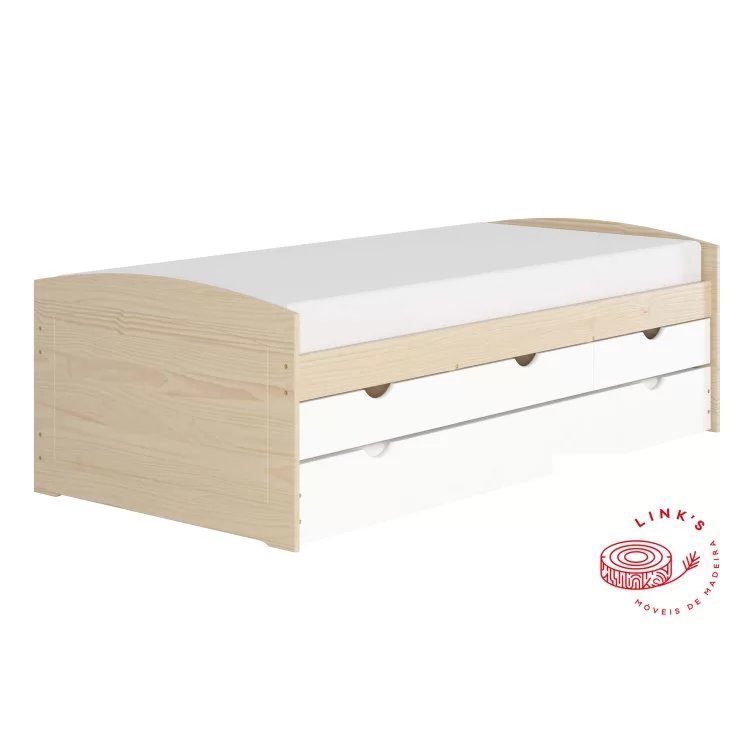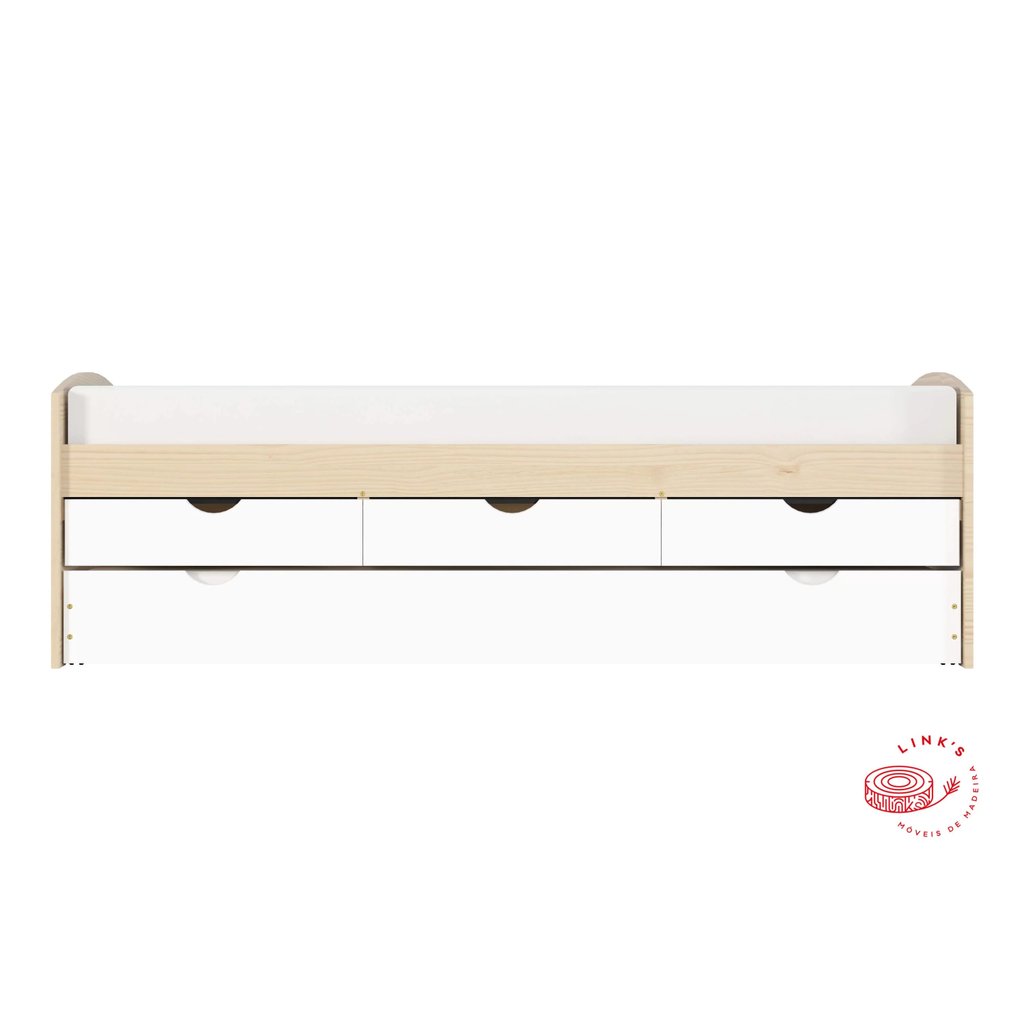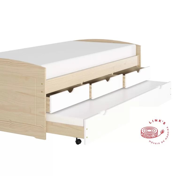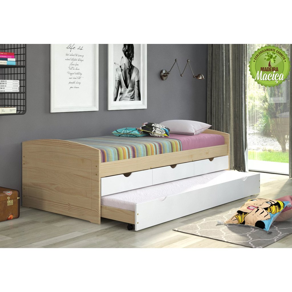 Bicama Solteiro 3 Gavetas em Madeira Maciça Ulli Natural/Branco
