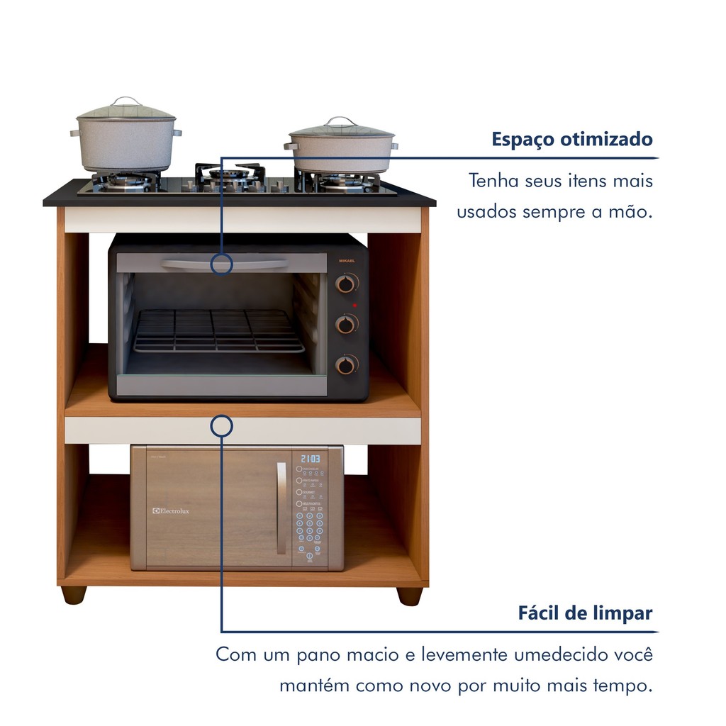 Balcão para Cooktop 5 Bocas 2 Nichos para Forno Turim Nature/Off White