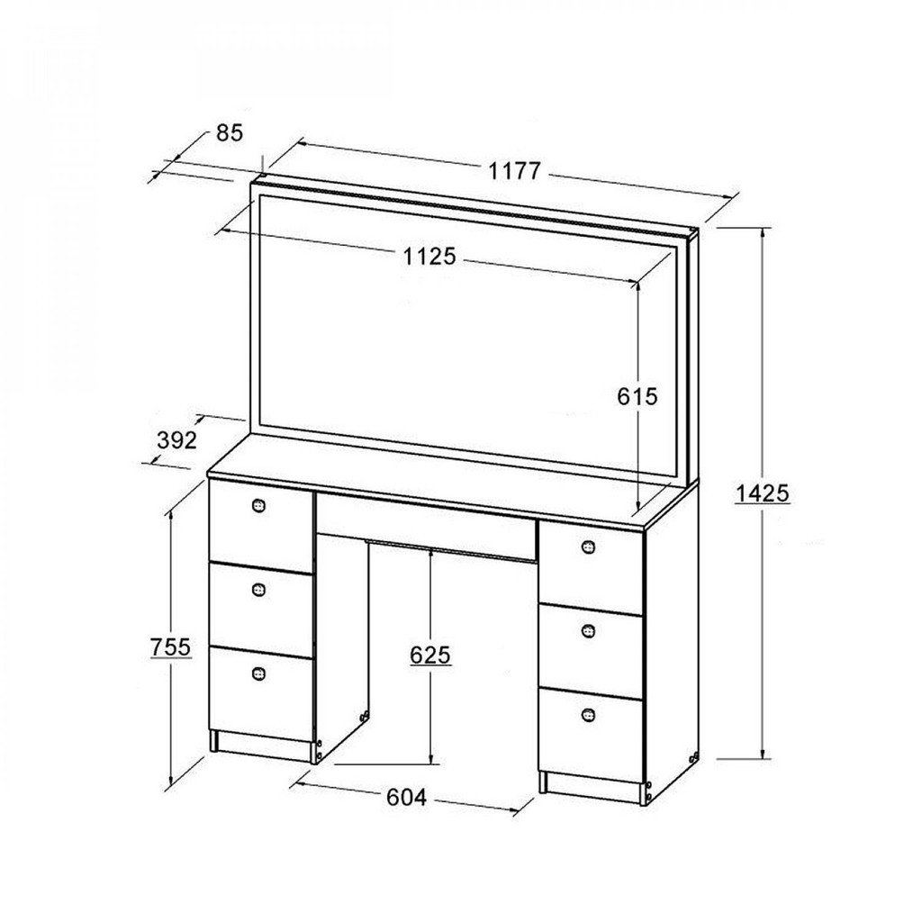 Penteadeira Espelhada 7 Gavetas Ditália