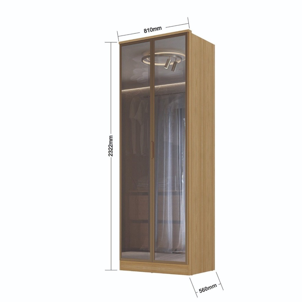 Guarda-roupa 2 Portas Reflecta 2 Gavetas Internas Ravi Olmo Italiano