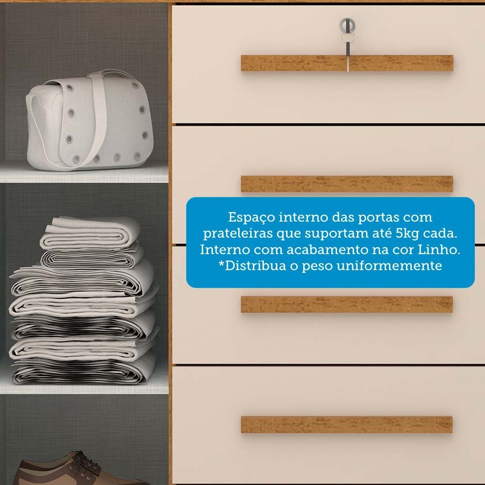 Cômoda 120cm 2 Portas 5 Gavetas 100% Mdf Coleus Espresso Móveis Off-White/Cinamomo