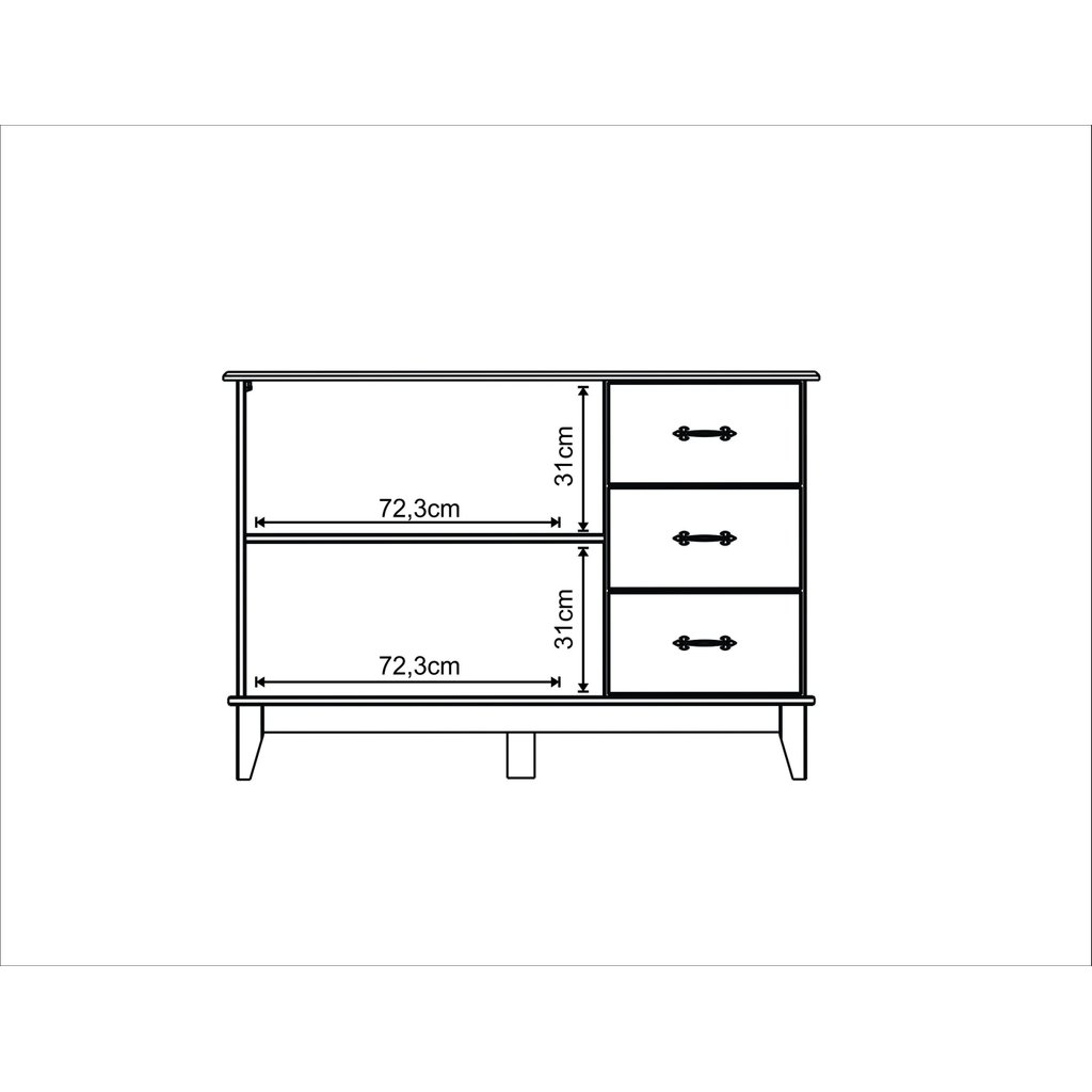 Buffet Aparador Madeira Maciça 2 Portas 3 Gavetas Bella 120