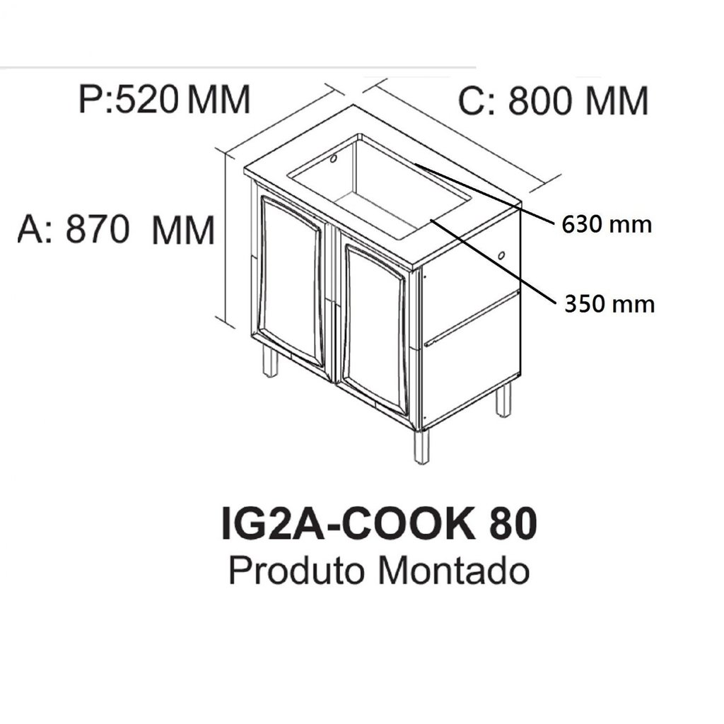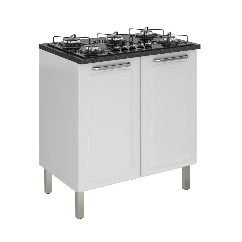 Balcão Cozinha em Aço 2 Portas 80cm para Cooktop 5 Bocas Dobradiças Slow Motion Tarsila Itatiaia