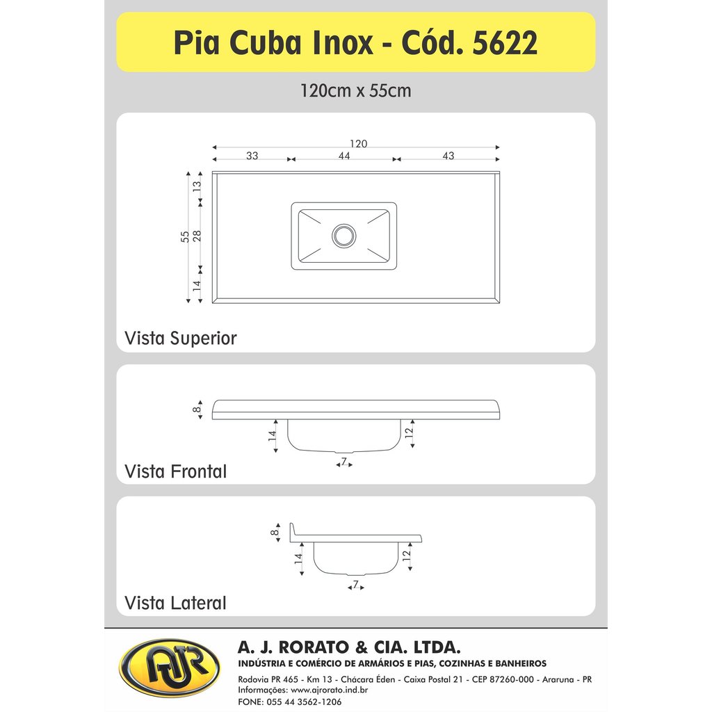Pia de Cozinha em Mármore Sintético com Cuba em Aço Inox 120cmx55cm Aj Rorato Travertino