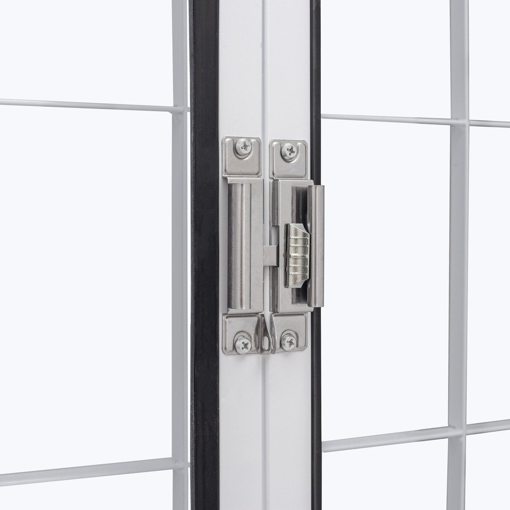 Janela de Aço de Correr Central 100x120cm 4 Folhas com Grade Quadriculada e Vidro Liso Qualitysol Ra