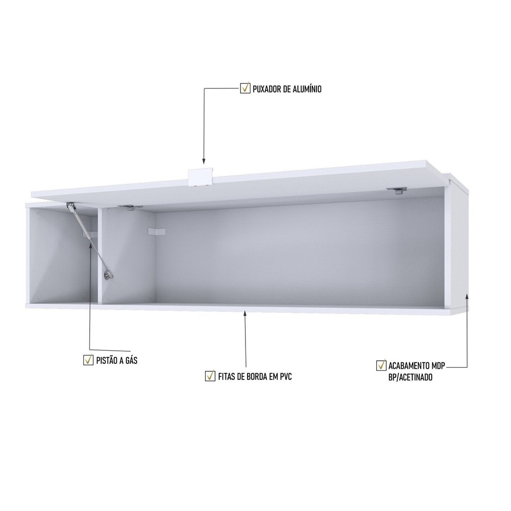 Armário Aéreo com Nicho e Porta Basculante 35x135x35cm