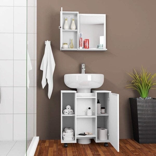 Gabinete de Coluna 1 Porta Pequin Branco/Ripado