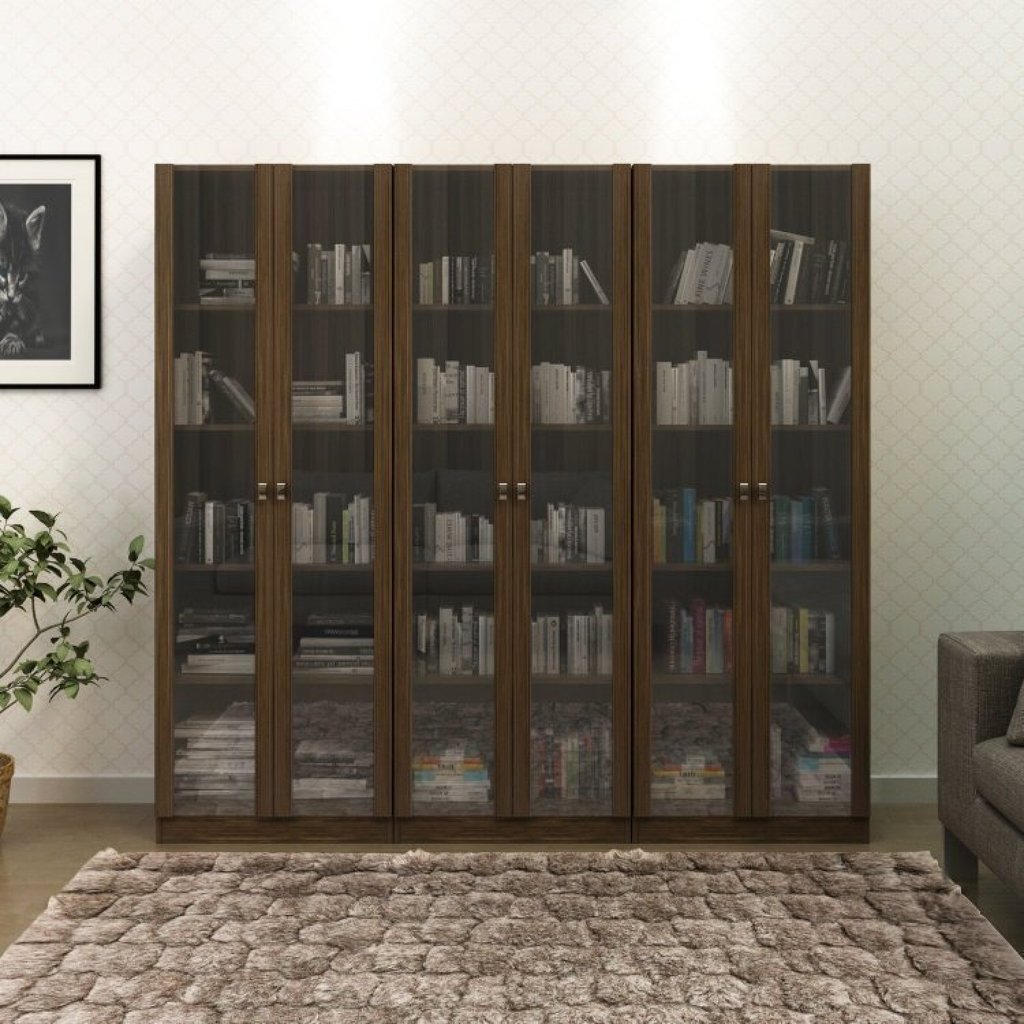 Kit 3 Armários para Escritório com Portas de Vidro ME4115 Nogal