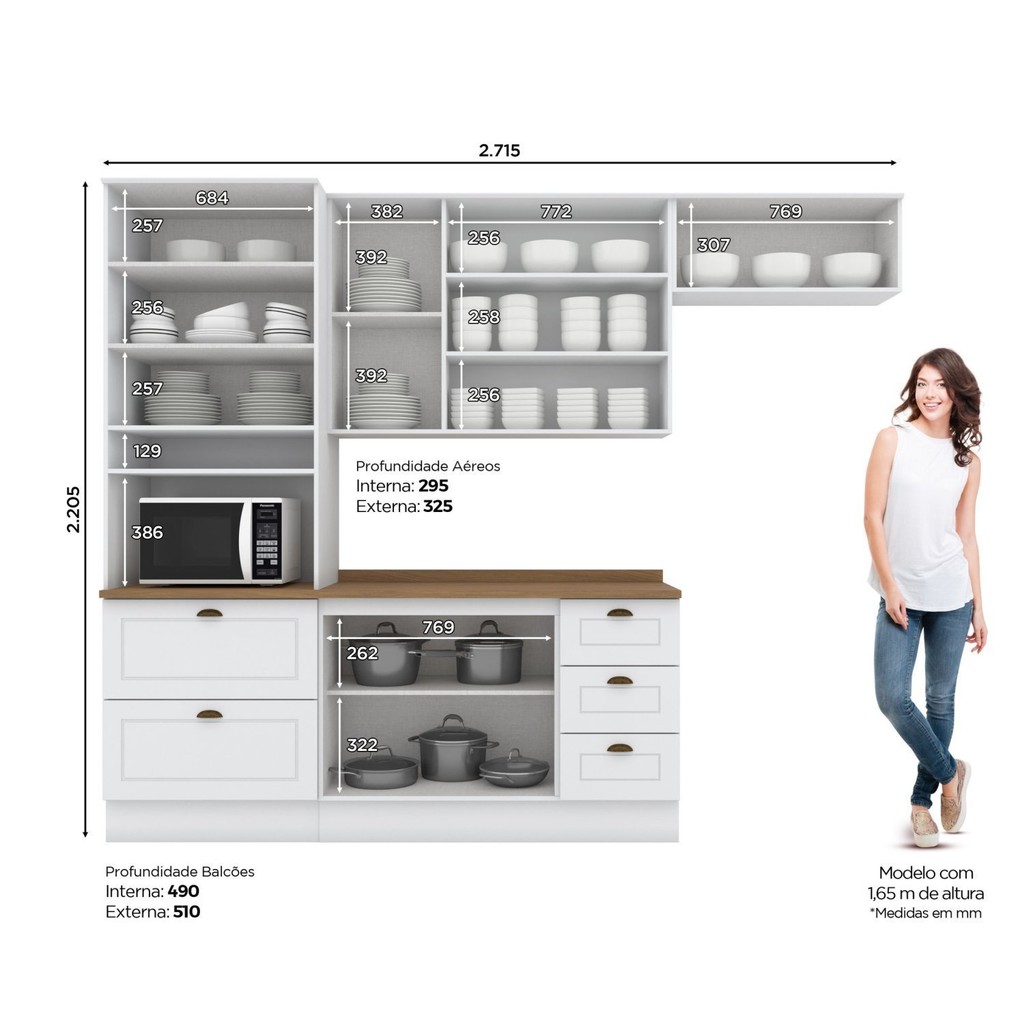 Cozinha Compacta 4 Peças com Torre Quente Emily Branco HP/Nature