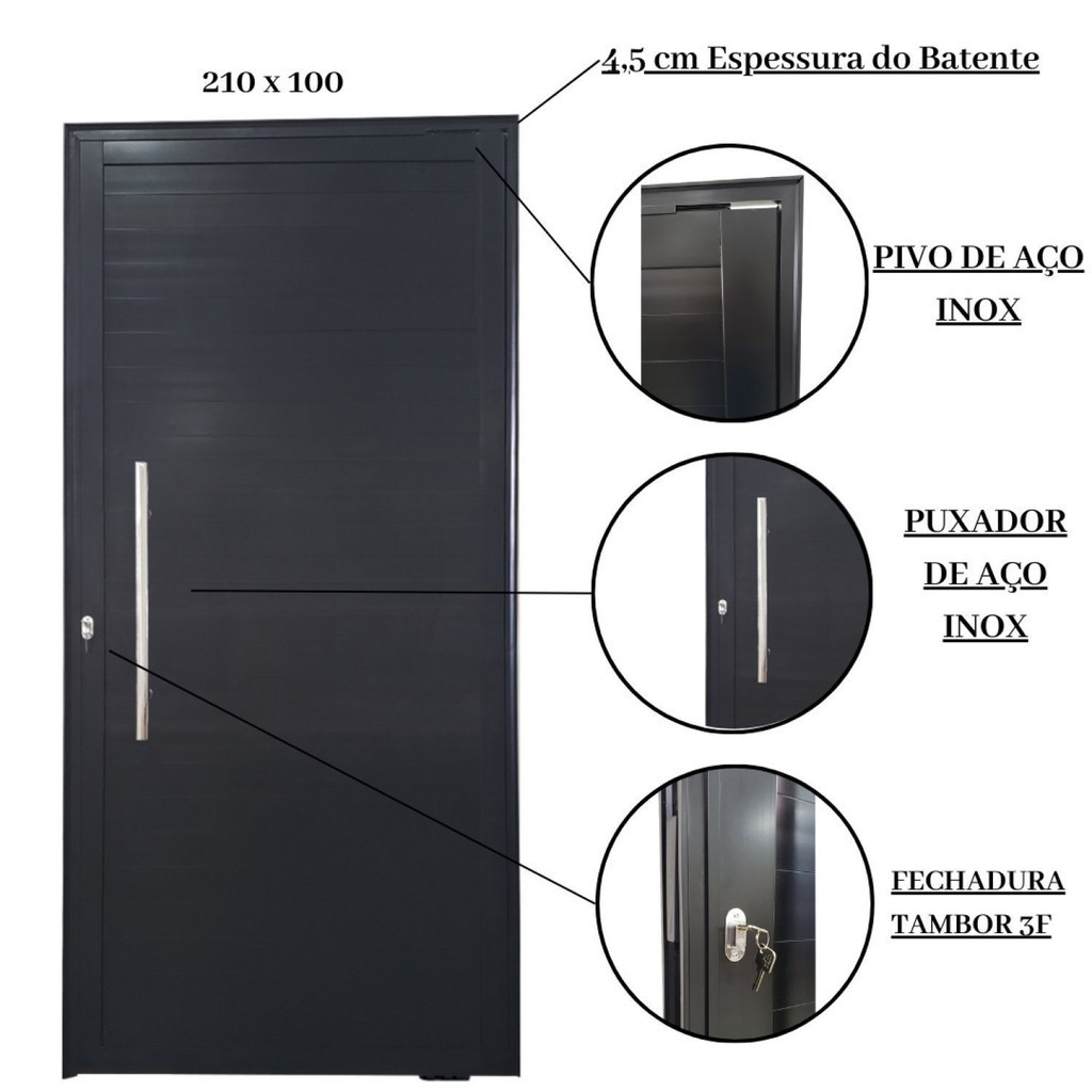 Porta Pivotante de Alumínio 210 X 100cm com Puxador Veneza Esquadrias Bergamo Abertura Direita Preto