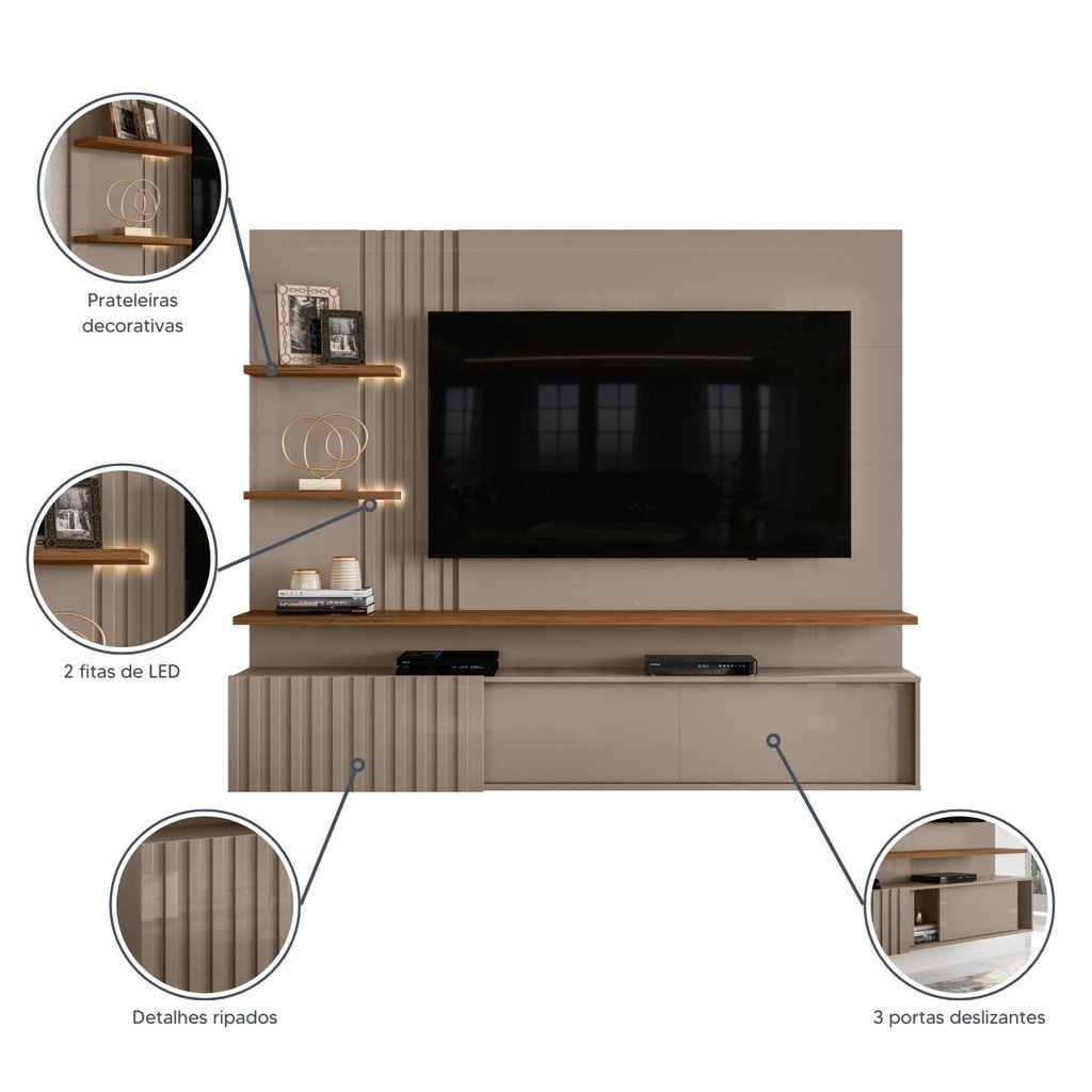 Painel para TV até 65 Polegadas LED Ripado 2 Portas Atena Fendi/Naturale