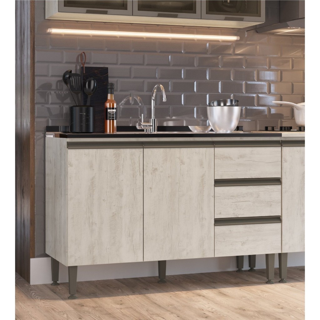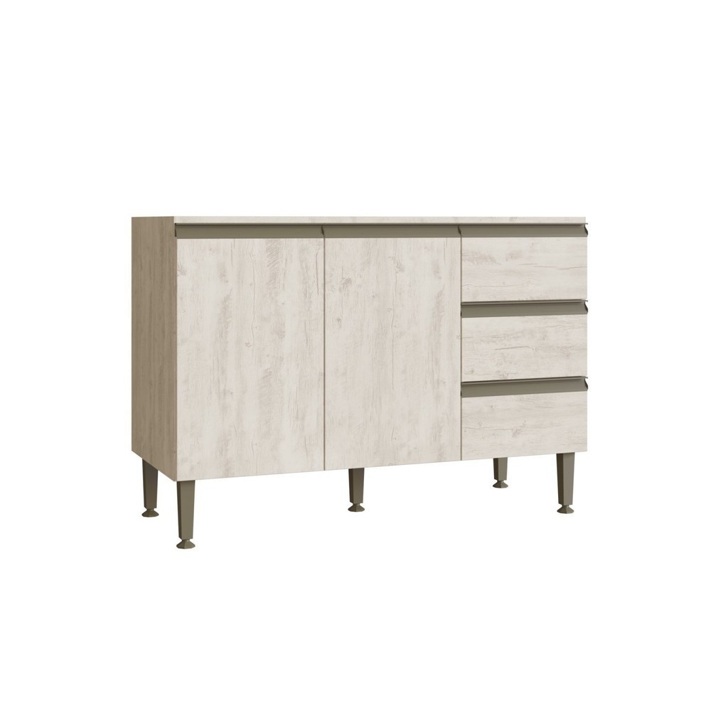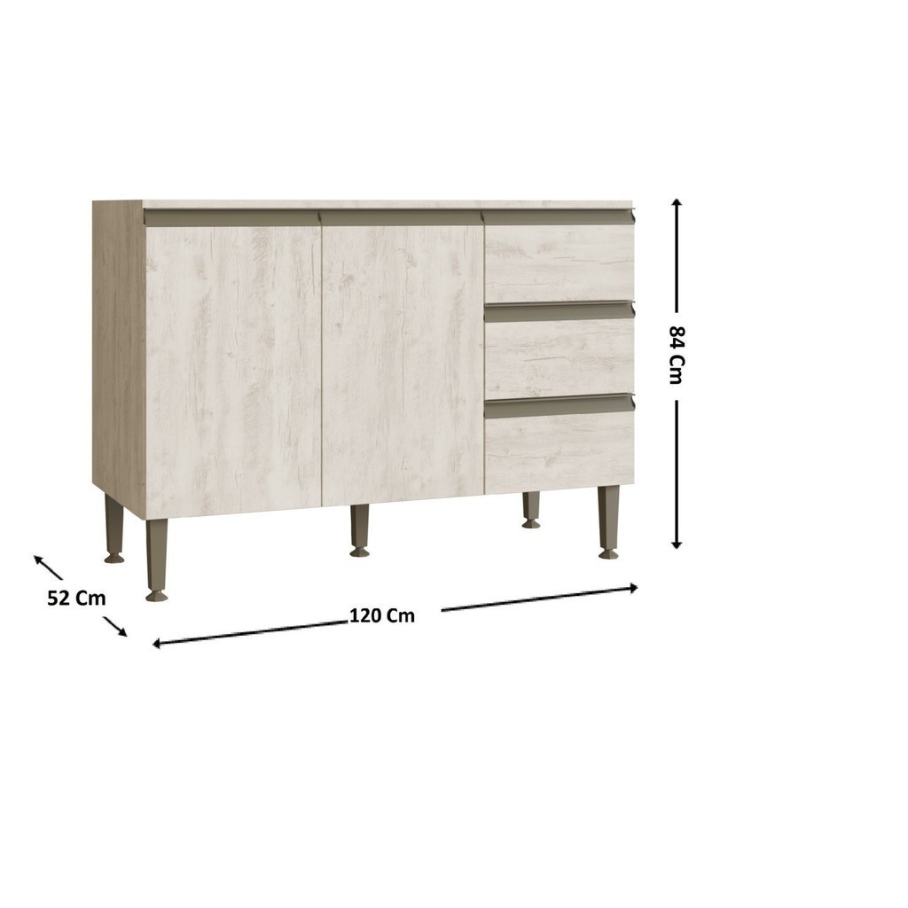 Balcão para Pia de Cozinha 3 Gavetas 2 Portas Greta Crema
