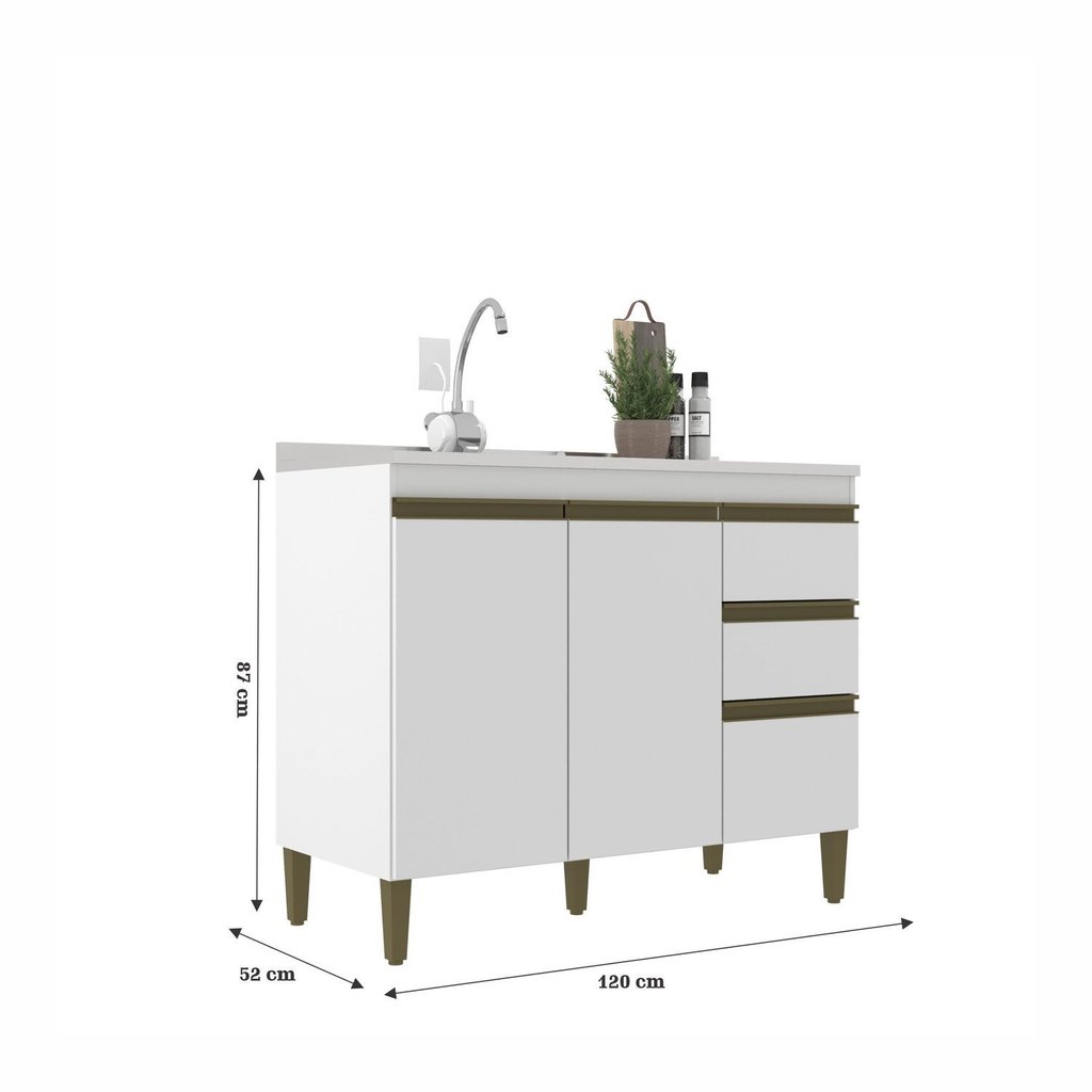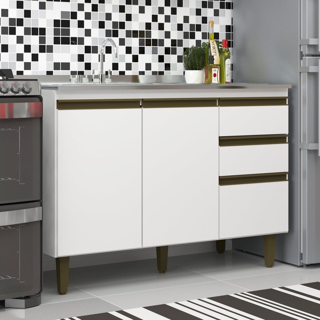 Balcão para Cozinha 3 Gavetas 2 Portas 120cm Branco